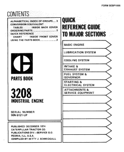 Spare parts catalog and systems operation testing and adjusting manual for Caterpillar Engines 3208